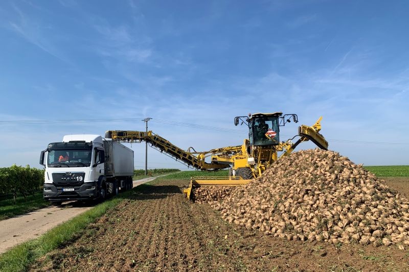 Die Gemeinschaft setzt aktuell zwei selbstfahrende Zuckerrübenreinigungs- und Verladungsgeräte des Herstellers Ropa-Maschinenbau ein.